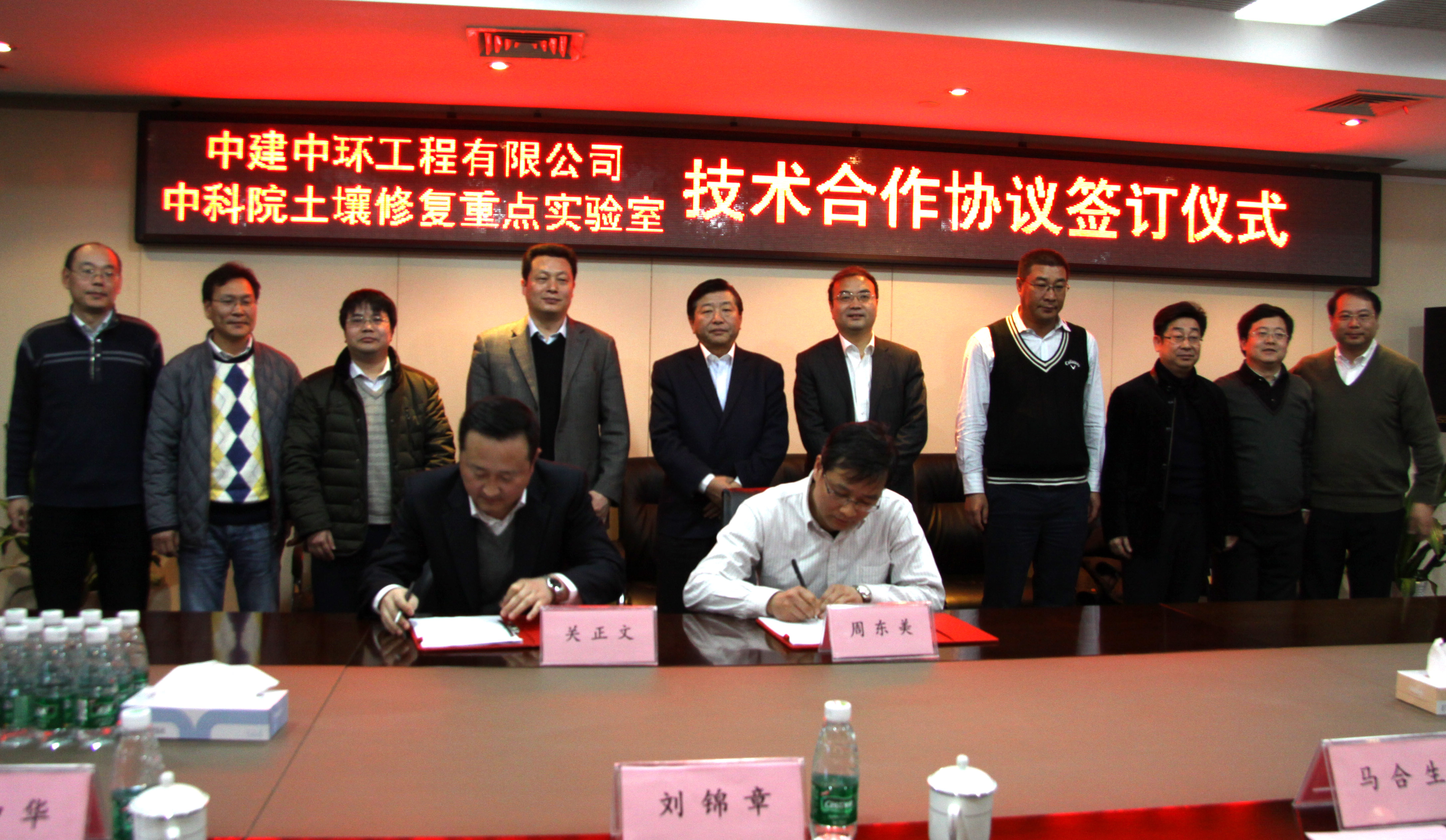 本网讯 为响应国家治理环境污染,建设绿色生态文明的号召,2月27日,中建中环与中国科学院土壤环境与污染修复重点实验室举行技术合作协议签订仪式,标志双方就土壤修复及环境治理等新型环保业务通过合作,优势互补。中建总公司党组成员、副总经理、股份公司副总裁刘锦章,中科院南京土壤研究所所长/研究员沈仁芳,中科院南京土壤研究所科技处处长/研究员滕应,中科院土壤环境与污染修复重点实验室主任/研究员周东美,中建二局副总经理、公司总经理马合生,公司副总经理、中建中环总经理关正文等领导出席了仪式。