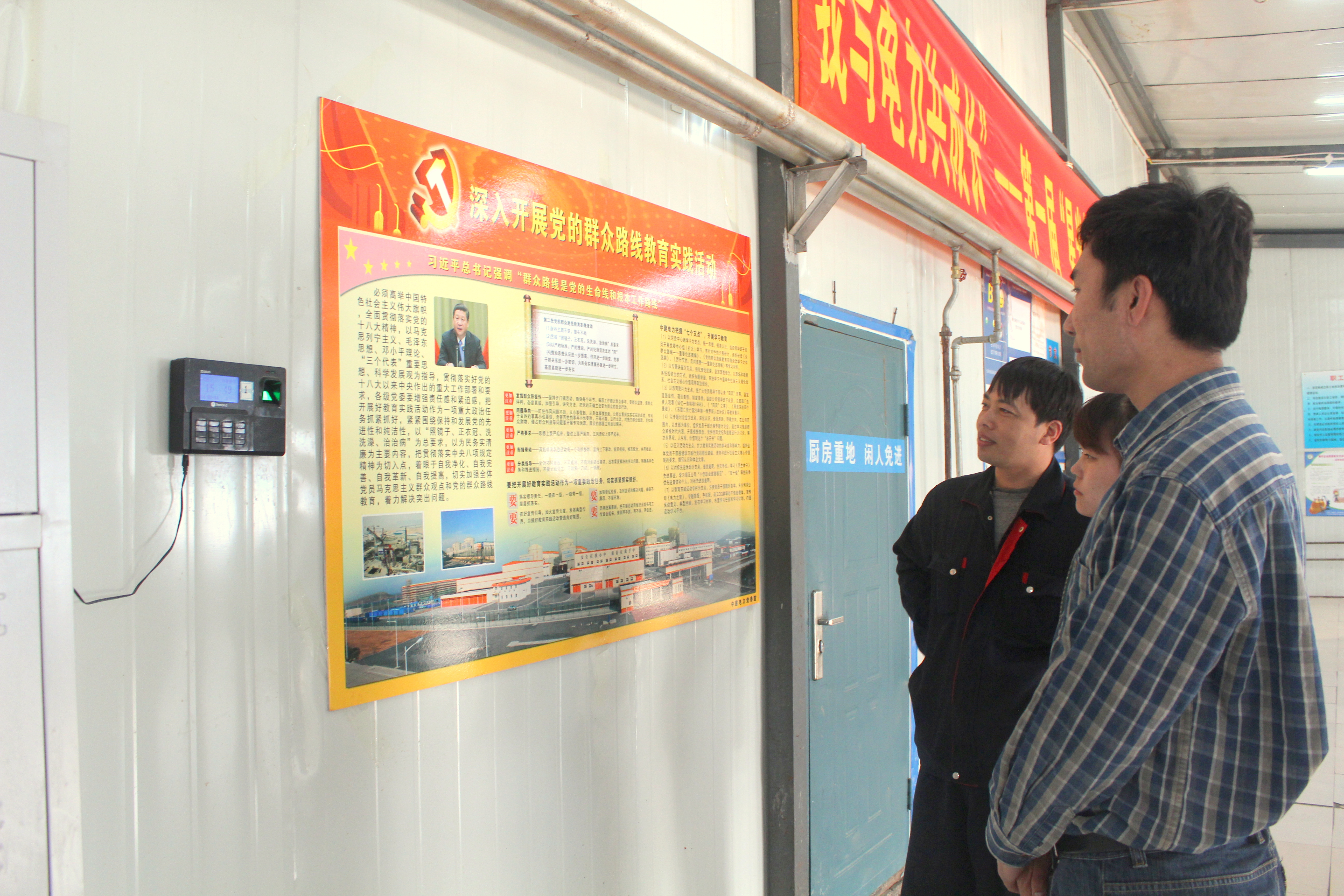 本网讯 “原来用四个‘要’和五个‘更加注重’就能了解如何开展第二批党的群众路线教育实践活动,这道‘菜’真是太生动了。”展板前的员工们纷纷讨论着,这是4月12日发生在公司长春宽城万达广场项目职工食堂里的一幕。原来,为深入开展教育实践活动,中建电力建设有限公司设立活动主题展板,并要求将展板悬挂在项目生活区食堂等员工出入频繁的地方,为员工形势任务教育加道“菜”。(孟金龙)