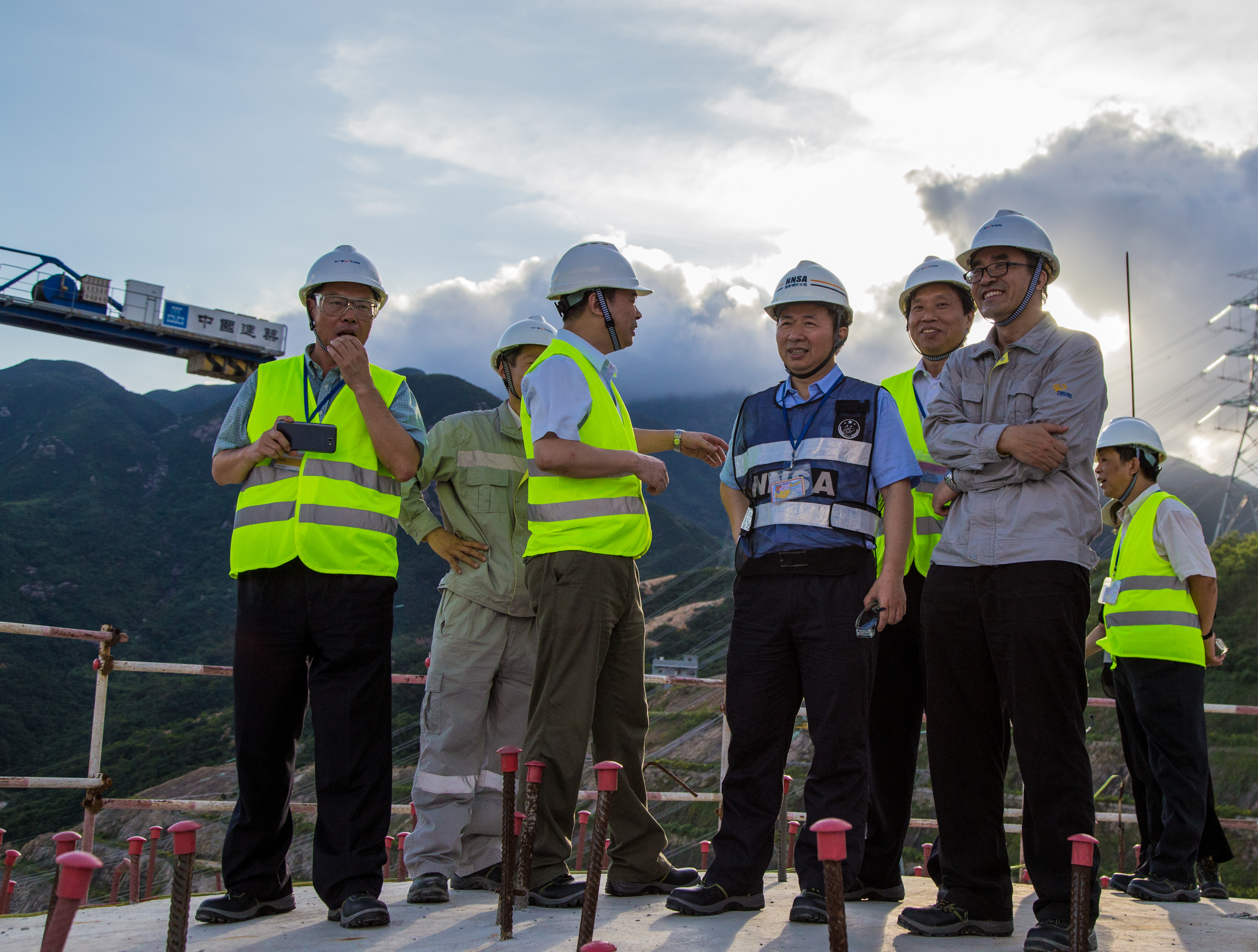 本网讯 8月9日,国家核安全局局长、环境保护部副部长李干杰一行赴由公司主要参与承建的台山核电厂视察指导工作。李干杰一行在听取了关于台山核电工程进展、工作计划及EPR核电技术引进、消化、吸收和再创新安排的汇报后,深入工程施工现场,实地了解第三代EPR核电站的工程建设情况。