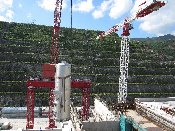 本网讯 8月15日,台山核电核岛项目核辅助厂房成功引入一位重量级的“安全卫士”——硼酸柱,该柱高8.12米,直径达2.65米,净重11吨。引入过程持续3个小时,使用600吨履带起重机,精准安装就位于核辅助厂房+3.7米处。