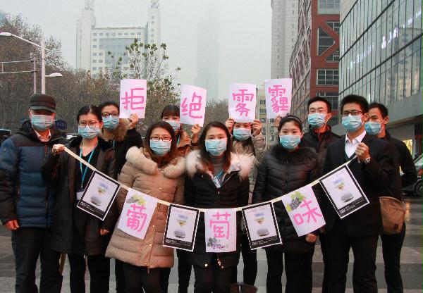 本网讯 近日,南京等地“深陷霾伏”,圣诞节前夕更是惊现枚红色雾霾。为此,12月25日,中环公司开展“绿色圣诞·拒绝雾霾”活动,共有20余人参加此次活动。