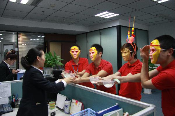 中环工程公司:公司在灯谜会基础上,还加入了“金猴送元宵”的环节,为加班员工送上节日问候。