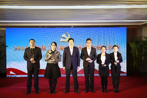 本网讯 3月3日,在局召开的2016年党建工作暨宣传思想政治工作会上,公司喜获宣传工作“最”实力团队荣誉称号,总部员工陈雅君获得“宣传达人”称号,红沿河核电项目员工涂志梁获得“新锐之星”称号。国务院国资委宣传局副局长韩天,局党委书记、董事长陈建光为公司获奖代表颁奖,公司党委书记、副总经理程惠敏,公司党委副书记、纪委书记、工会主席聂宏凯出席会议,会上,程惠敏书记代表公司党委领取《2016年党建思想政治工作责任书》。