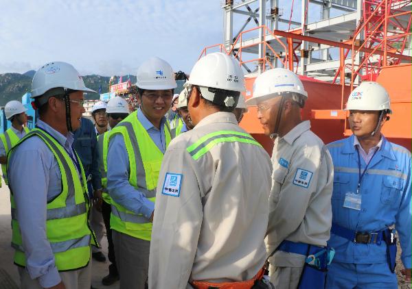 期间,洪小勇大使一行登上锅炉钢结构顶层,俯瞰整个电厂厂区,详细了解了项目施工进展、质量和安全管控、环保技术措施等情况,并实地参观了安全检测区和安全体验区。在听取了项目整体情况汇报后,洪大使对项目员工的付出表示肯定,并强调,越南永新电厂项目是中越两国的友谊工程和示范工程,受中越两国政府及社会的高度关注,希望所有参建单位做好环境保护措施和安全稳定策划,以高标准、严要求将项目建设成为惠及中国两国传统友谊的精品标杆工程。(李蕾 陈诚)