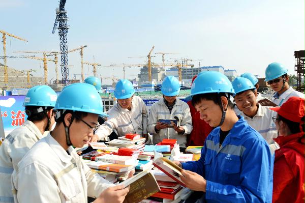 本网讯 11月2日,田湾核电项目联合江苏连云港连云区总工会和宿城街道总工会,开展“流动图书车”进工地活动,为核电建设者们免费送去书籍、报刊等,受到大家的热烈欢迎。
