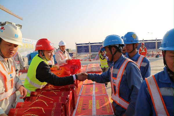 会后,聂宏凯副书记一行前往项目施工现场,开展公司工会“暖冬行动”,为坚守项目的一线员工送去了新春慰问品,并强调了现场安全生产的重要性。