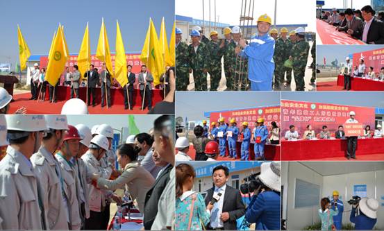 活动中,与会领导现场巡查了该项目30余名青年技术工人技能竞赛实况,为项目职工书屋揭牌,为公司各单位授予了“安康杯”竞赛标准旗帜、袖标、安全书籍,项目职工代表现场发出安全生产倡议书,公司工会当场向该项目赠送了创建全国“安康杯”竞赛优胜班组启动基金,最后与会全体人员共同参加了“安全承诺”签名活动。