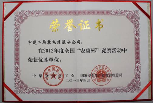 本网讯 近日,全国“安康杯”竞赛评选活动落幕,公司在2012年度全国“安康杯”竞赛活动评选中取得佳绩,被中华全国总工会和国家安全监督管理局联合授予2010年度全国“安康杯”竞赛优胜单位,这是公司在历年深入开展“安康杯”竞赛优胜企业的基础上,首次获得全国性“安康杯”竞赛殊荣。