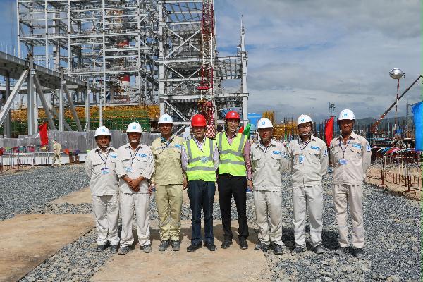 本网讯 7月9日,越南永新电厂项目2号主厂房首根钢结构正式开始吊装,比预定计划提前了一周。公司党委书记、副总经理程惠敏,公司副总经理、总经济师耿利刚出席了当天的吊装仪式。