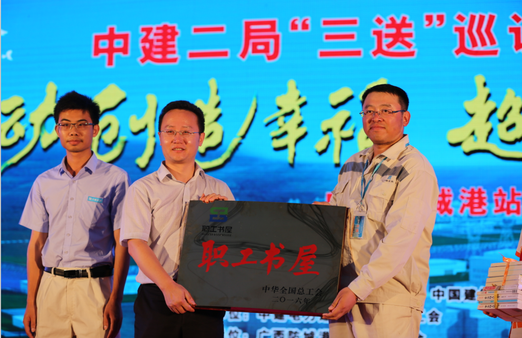 晚上七点整,中建二局“三送”巡回慰问活动正式开始。活动现场,中建电力党委书记、副总经理程惠敏致欢迎词,全国总工会职工书屋办公室主任张爱民、广西建设工会主任王伟华为项目“全国模范职工小家”创建揭牌,公司工会为防城港项目赠送建家基金5万元;张爱民主任为项目颁发全国职工书屋示范点牌匾,并为职工代表赠书,职工代表杨利成发出读书倡议;随后,张爱民主任、邓小林书记、聂宏凯书记将公司首批图书刊物交由中国国际图书贸易集团有限公司发往海外项目,进行“图书漂流”,将“职工书屋”建到海外;局工会为项目劳务工安全督察队赠送活动基金1万元,为项目赠送“送清凉、送文化、送安康”慰问金2万元,与会领导为项目职工及劳务工人赠送生活用品,发放防暑降温物品。 演出活动在中建电力防城港核电项目自编自演的舞蹈《舞动青春》中拉开帷幕,全国总工会文工团和中建二局首次联袂出演,吉尼斯世界纪录保持者、全总文工团金琳琳的晃圈表演《巅峰时刻》震撼全场,曾获‘全国建筑业歌手大赛一等奖’的中建二局工会女工主任沈玲玲独唱《工地飞来一只百灵》赢得了全场的掌声……一个个响亮的名字,一段段精彩的表演,为现场观众带来了一场听觉和视觉的饕餮盛宴,歌曲《父亲》为“父亲节”这个特殊的节日添上了一缕温情。最后,全总文工团和中建二局携手带来的歌曲《相亲相爱》把活动推向高潮,场下观众主动起立,跟着歌声一起“摇摆”。 “太好看了,咱们工地来了这么多一辈子都没见的大明星,我全程录了像,回去要给儿子看看他爸爸在工地也能看到这么好看的节目。”散场后仍然恋恋不舍的一位工人朋友激动的说到。 据悉,近年来,中建二局工会每年开展巡访慰问和文艺演出相结合的“三送”活动,足迹遍布大江南北,受益职工人数超过10万人。此次,首度跟全总文工团联合,把“三送”巡回慰问活动第一站放在防城港核电项目,不仅是对项目全体员工的关爱,更极大的鼓舞了全体职工的士气,为建设“华龙一号”,迎接中国建筑核电三十年注入了强大的动力。(张翔 金显龙)
