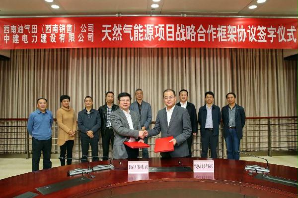 本网讯 10月31日,公司与中国石油西南油气田(西南销售)公司在成都签订《天然气能源项目战略合作框架协议》。西南油气田(西南销售)公司总会计师王显金一行与局总经理助理、公司总经理胡立新,公司副总经理、中建电力中环工程公司总经理关正文等出席签字仪式。