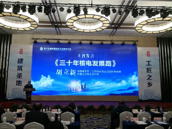 本网讯 近日,公司董事总经理胡立新代表中建二局,出席第十五届中国建筑业高峰论坛,并作了题为《三十年核电发展路》的主旨发言。